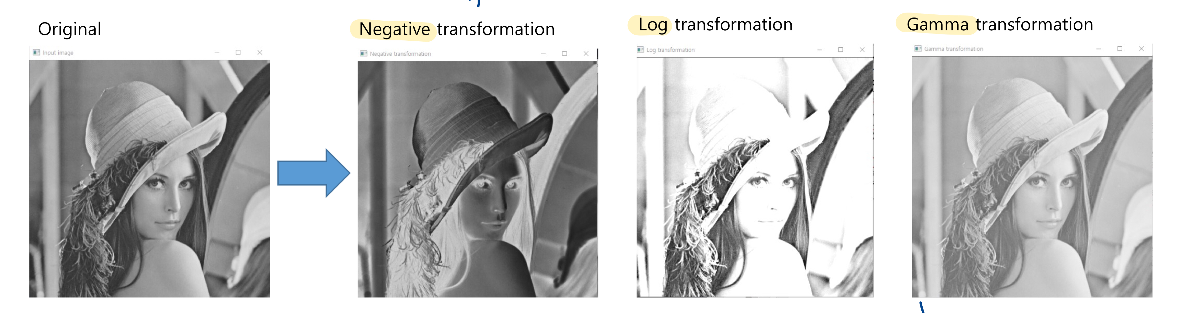 intensity transformation์๋ ํฌ๊ฒ 3๊ฐ์ง ์ข ๋ฅ๊ฐ ์๋ค.