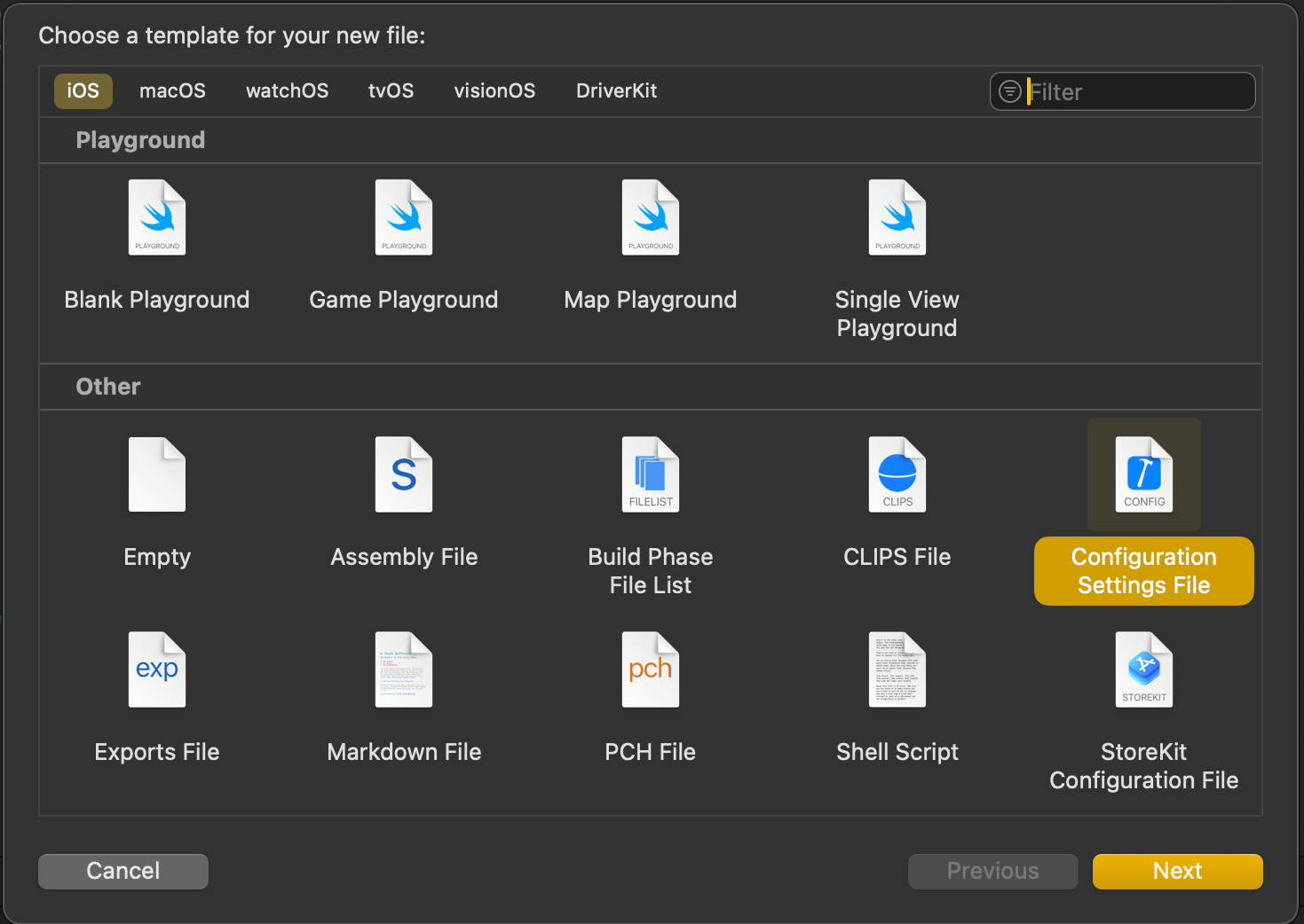 ### 3๏ธโฃ Xcode์์ .xcconfig ํ์ผ์ ๋น๋ ์ค์ ์ ์ถ๊ฐํ๊ธฐ