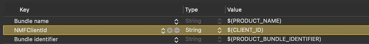 ์ฌ๊ธฐ์ + ๋ฒํผ์ ๋๋ฌ NMFClientId ๋ผ๋ ํค๋ฅผ ์ถ๊ฐํ๊ณ , Value์๋ ์๊น ๋ฐ๊ธ๋ฐ์ Client ID๋ฅผ ๋ฃ์ด์ค๋ค.